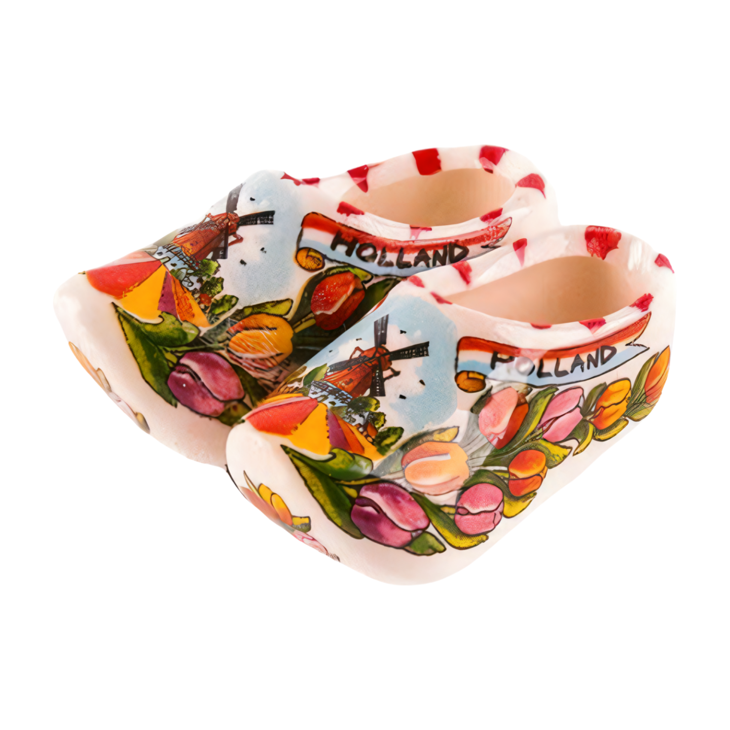 Magnet Clogs - Tulip Magnet Clog Paar 5 cm Tulpendekor Aus Steingut, Mit Tulpen in Farbe bedruckt