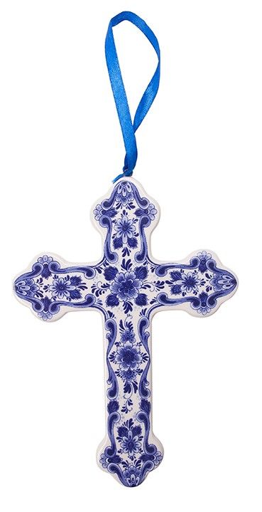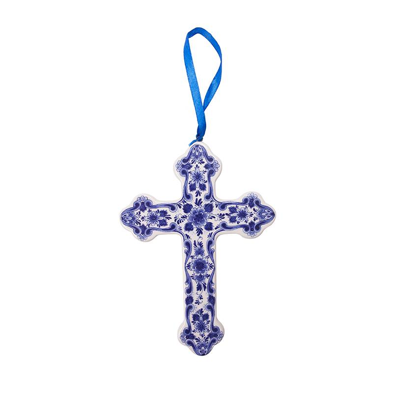 Delfter blauer Weihnachtsschmuck Kreuz.