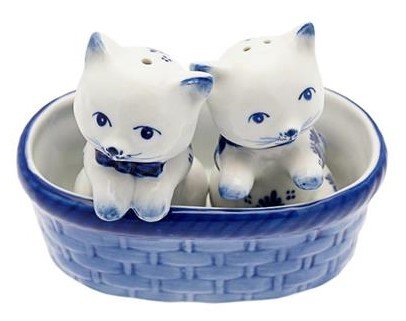 Zwei super süße Kätzchen als Salz und Pfeffer in einem Korb