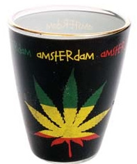 Rot-Gelb-Grün-Druck auf schwarz gefärbtes Schnapsglas