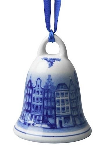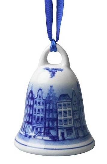 Delfter blaue Weihnachtsglocke, verziert mit Giebelhäusern.