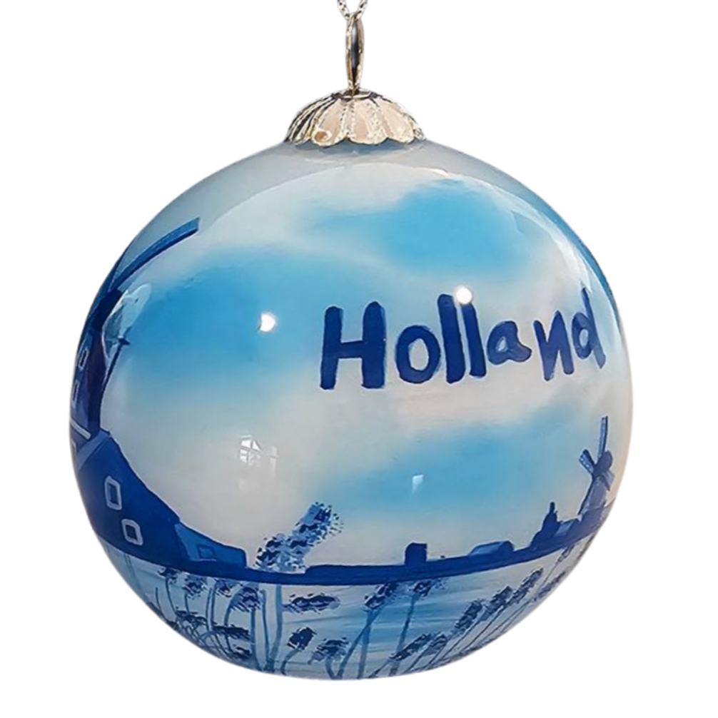 Weihnachtskugel in luxuriöser Geschenkbox – Mühlenlandschaft Holland