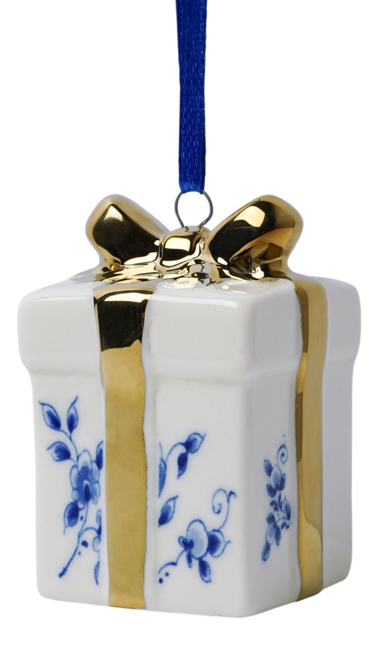 Geschenk mit goldener Schleife – Lustiger Weihnachtsschmuck mit Delfter Blau-Touch. Beginnen Sie jetzt mit dem Sammeln oder vervollständigen Sie Ihre Sammlung...