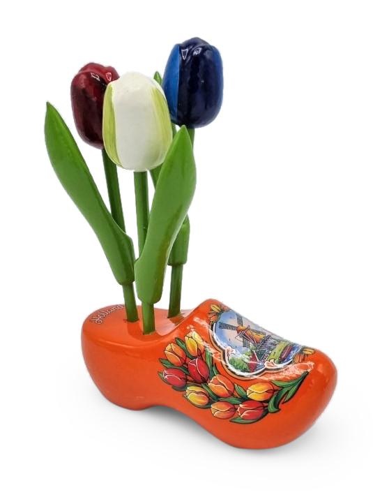 Ein typisch holländisches Souvenir zum Verschenken. Sie verschenken alles, was das Aushängeschild der Niederlande in 1x ist. Clogs Windmühlen und Tulpen.