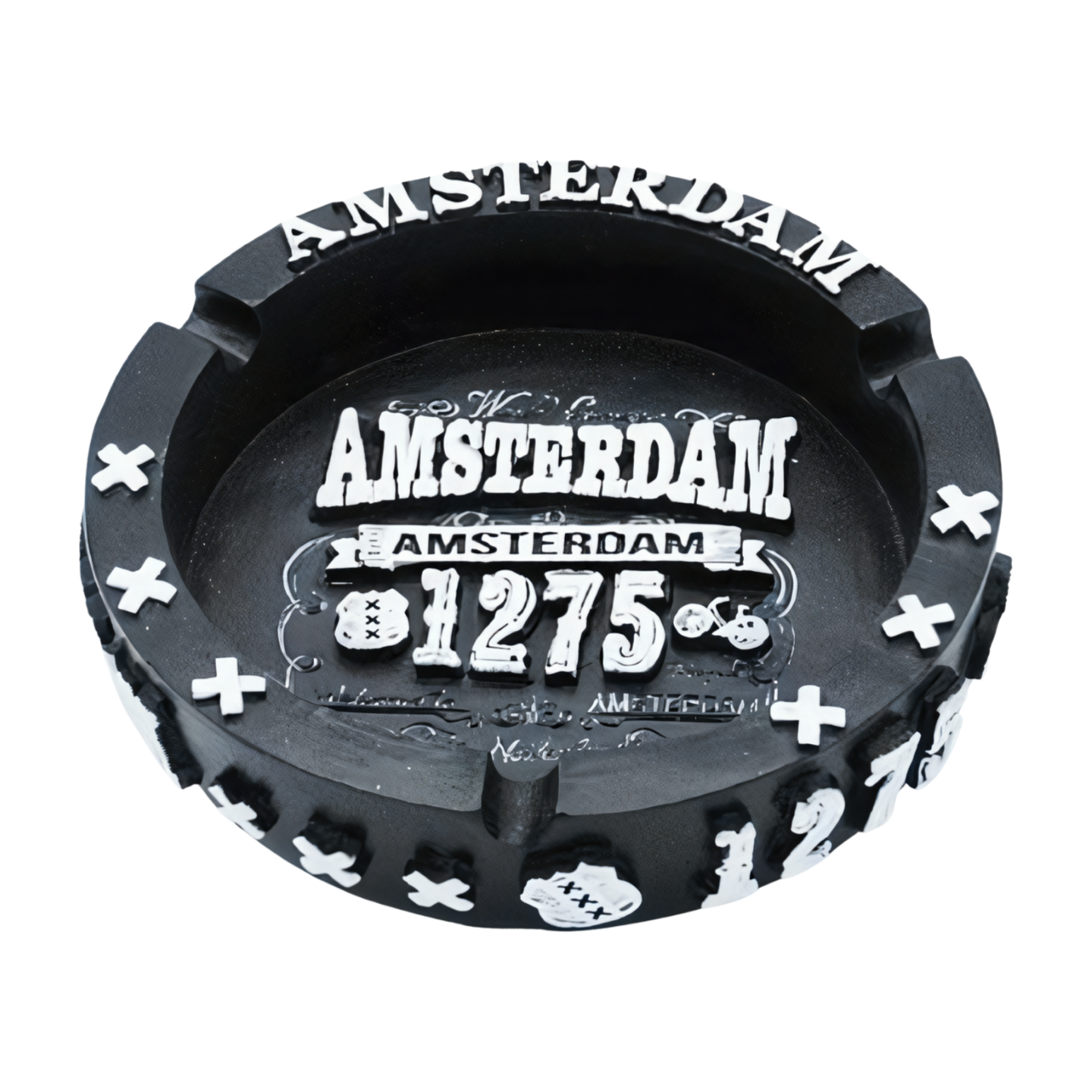 Are you looking for a stylish ashtray to extinguish your cigarette? This model is really cool. It is a beautiful black Amsterdam ashtray with embossed text Amsterdam 1275