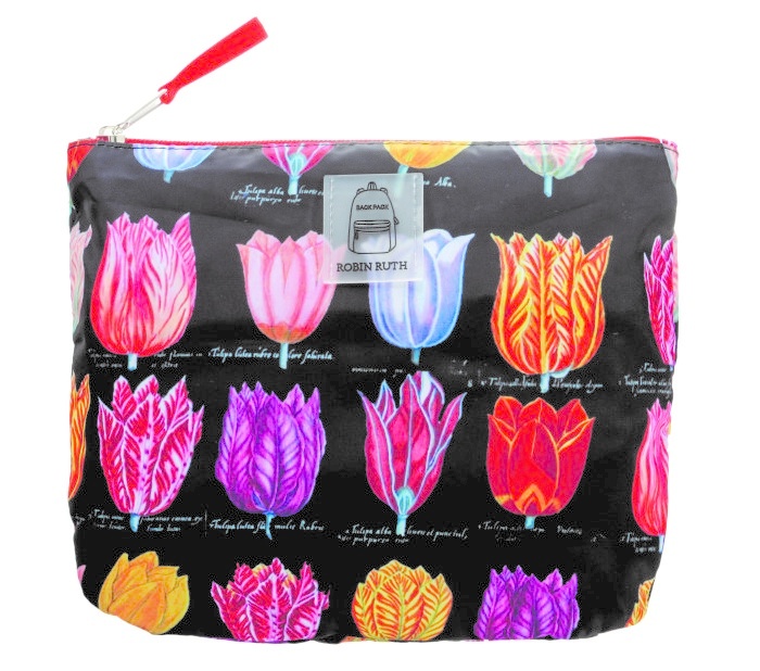 Beautiful backpack with beautiful tulip decoration. You may already have been able to use the folding bag, but now there is a perfect quality backpack. This folding backpack has one large main compartment and a front pocket with a zipper. Sturdy adjustabl