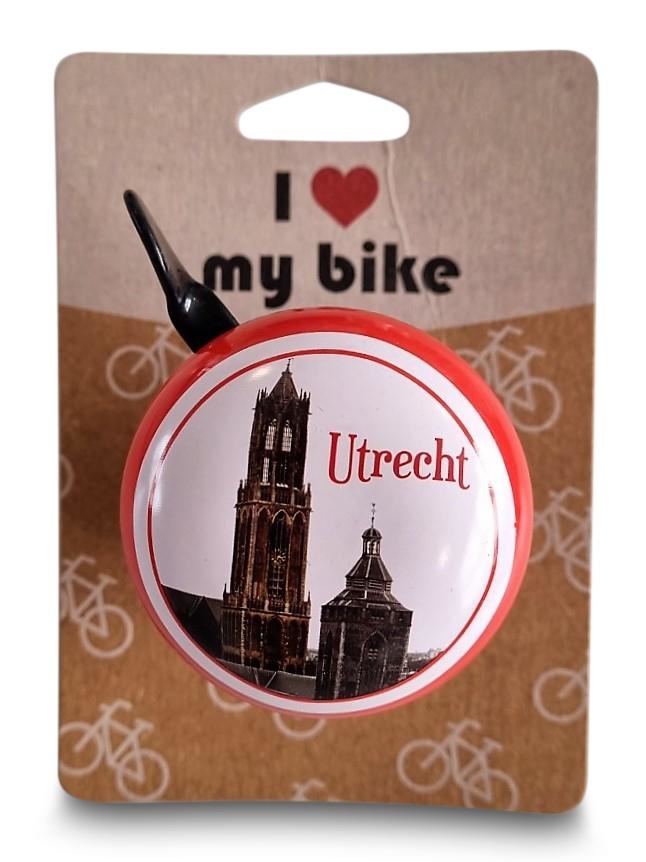 Bicycle bell Utrecht Typical Dutch bicycle bell with the Dom as decoration You will definitely stand out with this! Dimensions: 60 mm (diameter)
