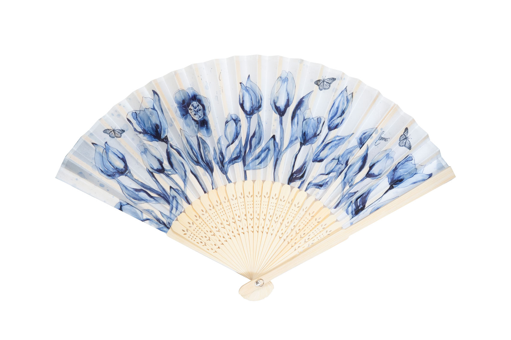 • Typisch Hollands Hand fan - White with blue tulips and a butterfly