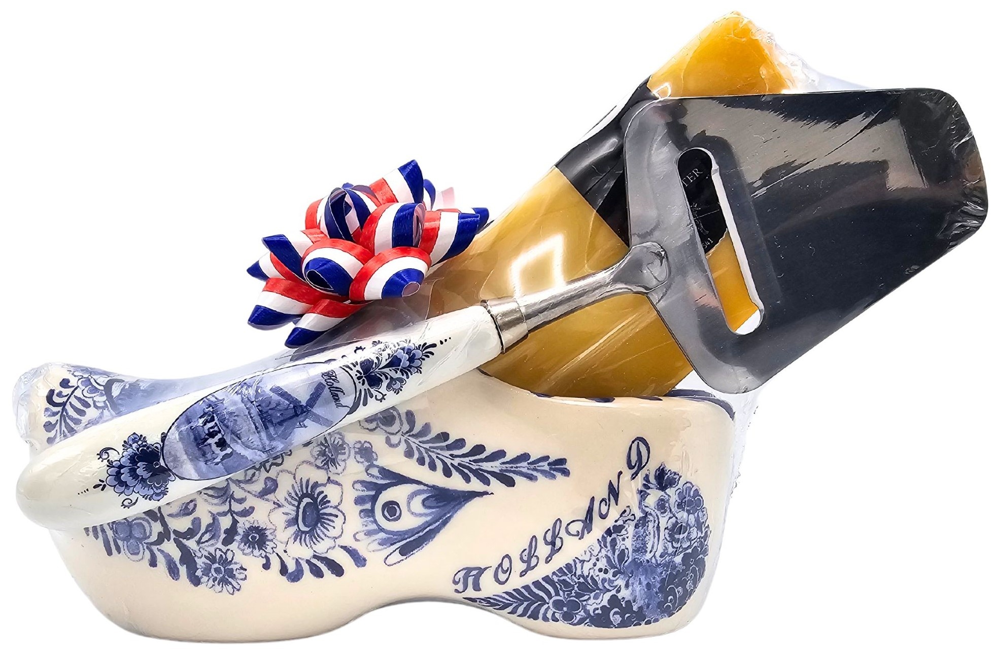 This cheese is packed together with a cheese slicer 18cm in a Delft blue ceramic clog