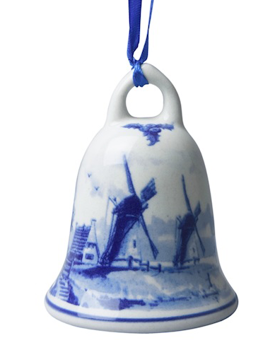 Delft blue Christmas bell decorated with a windmill landscape