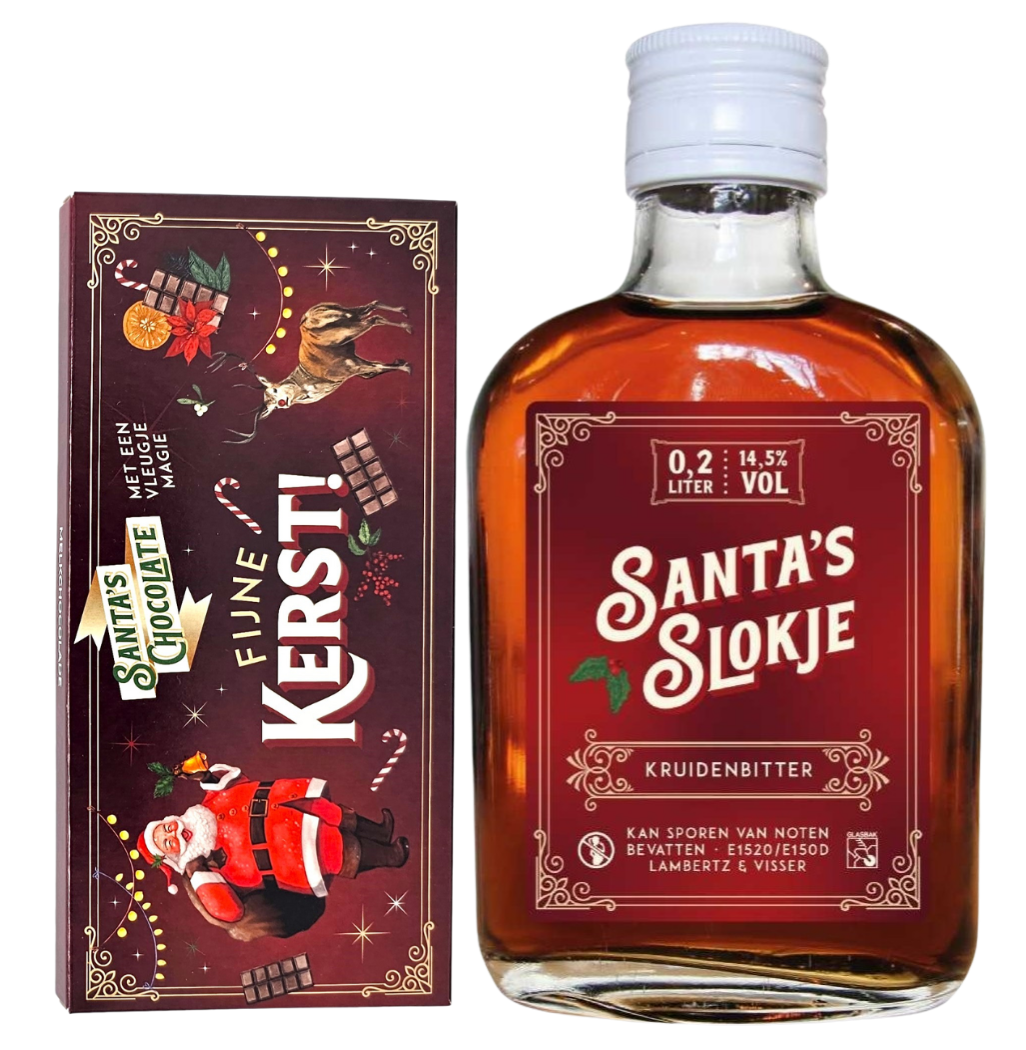 Santa 's Slokje is a traditional herbal bitter with a rich blend of almond, cinnamon and anise , perfectly balanced for a full, wintery taste experience.