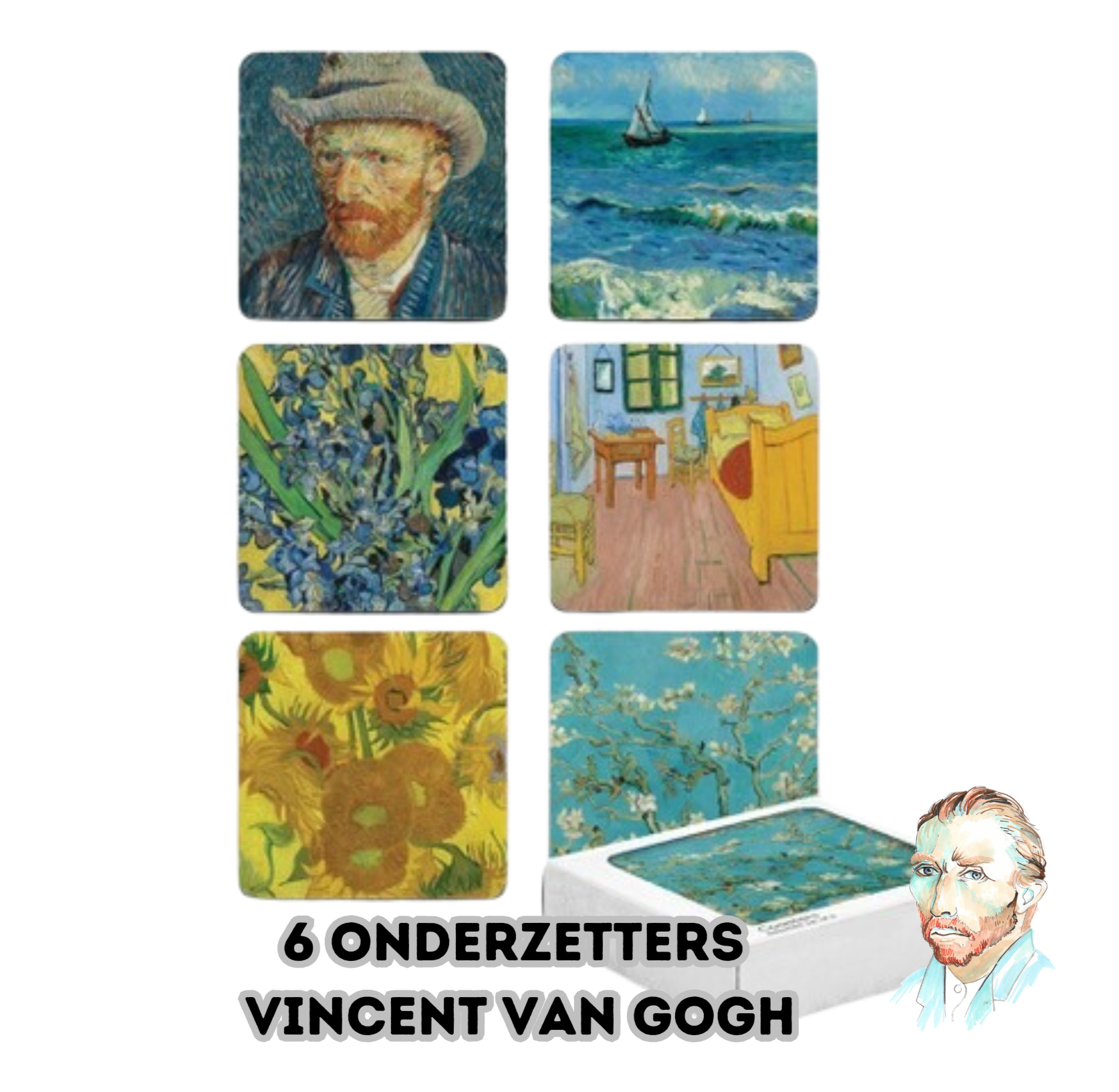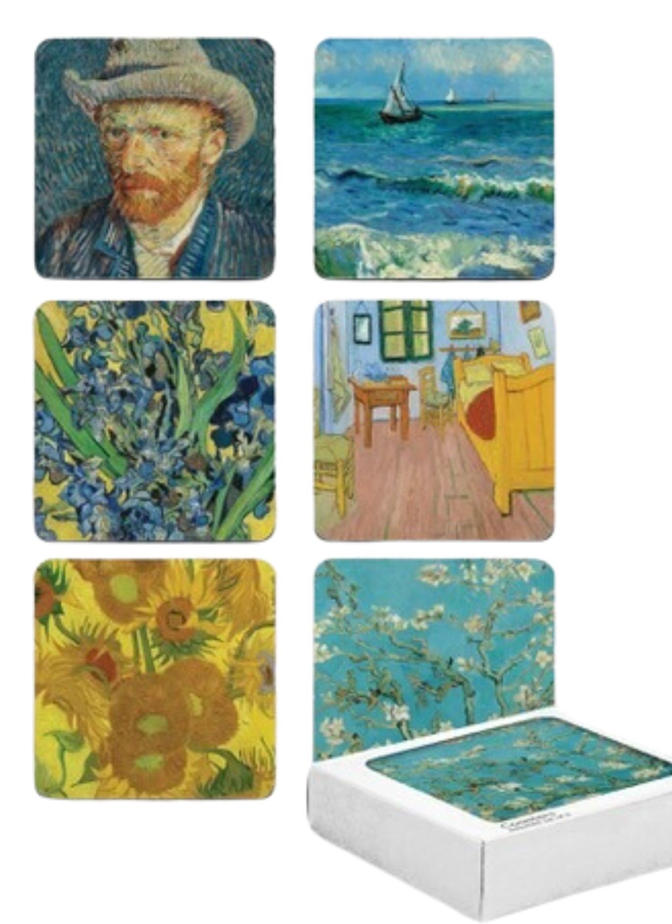 6 coasters - paintings by Vincent van Goh. Good top layer. Neatly finished. Supplied in a gift box