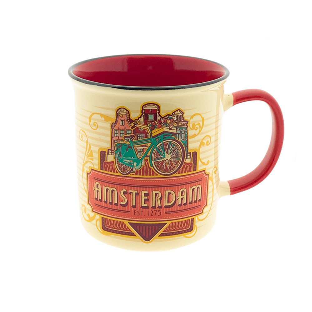 Large mug Cup Amsterdam bicycle Vintage in gift box