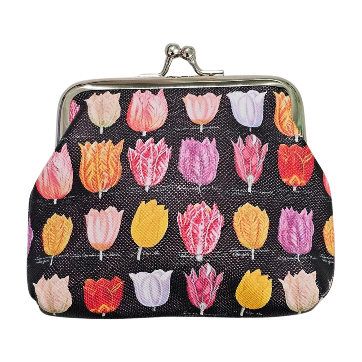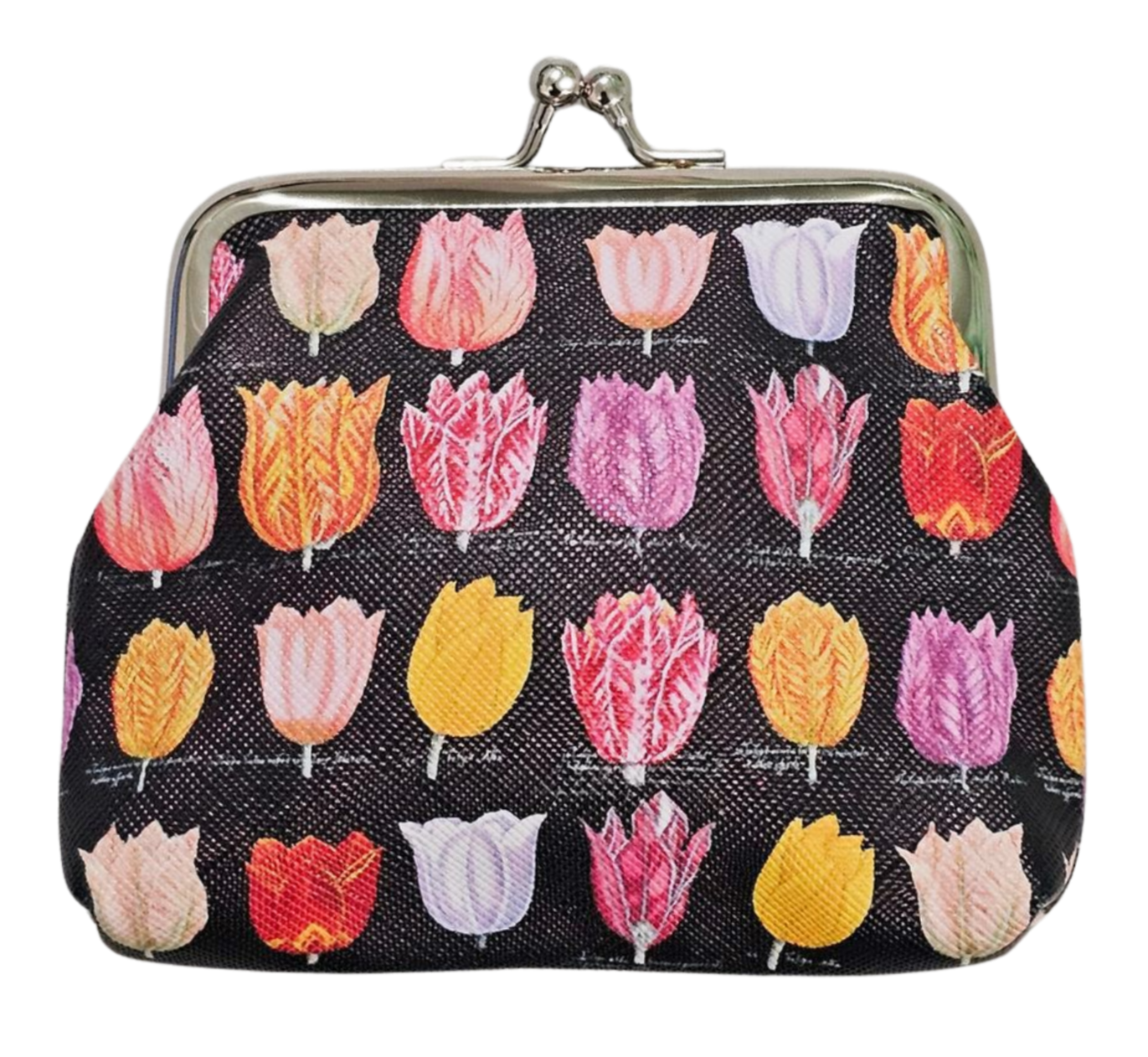 Cut Wallet Robin Ruth Super handy, fits in any (hand) bag. •Size: 8 x 7 x 6.5 cm (wxdxh) •Holland - collection by Robin Ruth •Image: Cut-Wallet - Holland - Tulips •Available with matching bags.