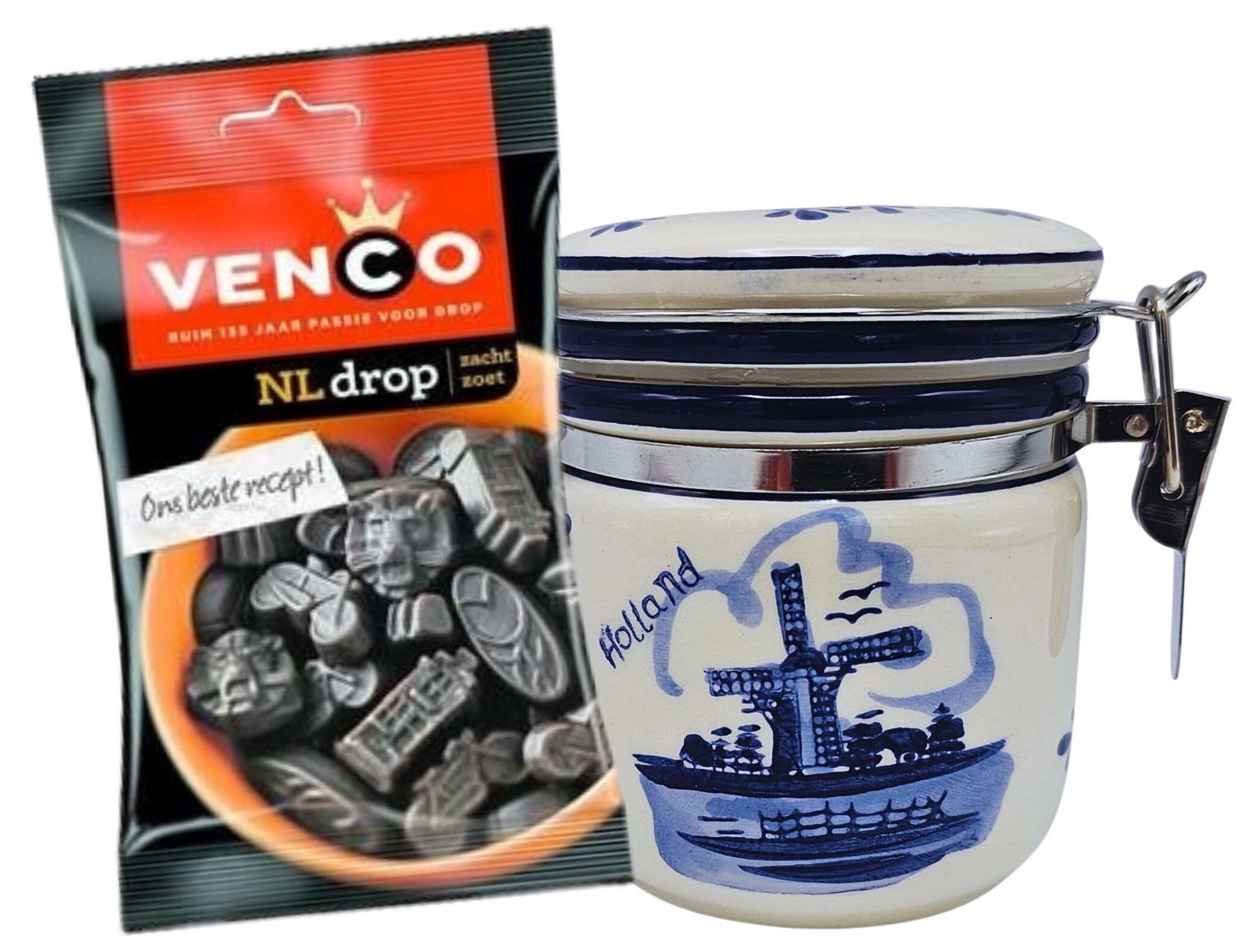 Beautiful and stylish Delft blue storage jar filled with Dutch liquorice (120 grams)