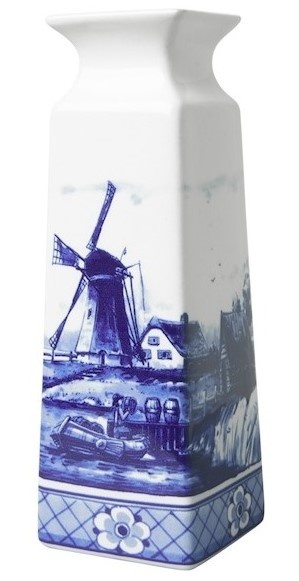 • Heinen Delfts blauw Delft blue Vase windmill landscape large
