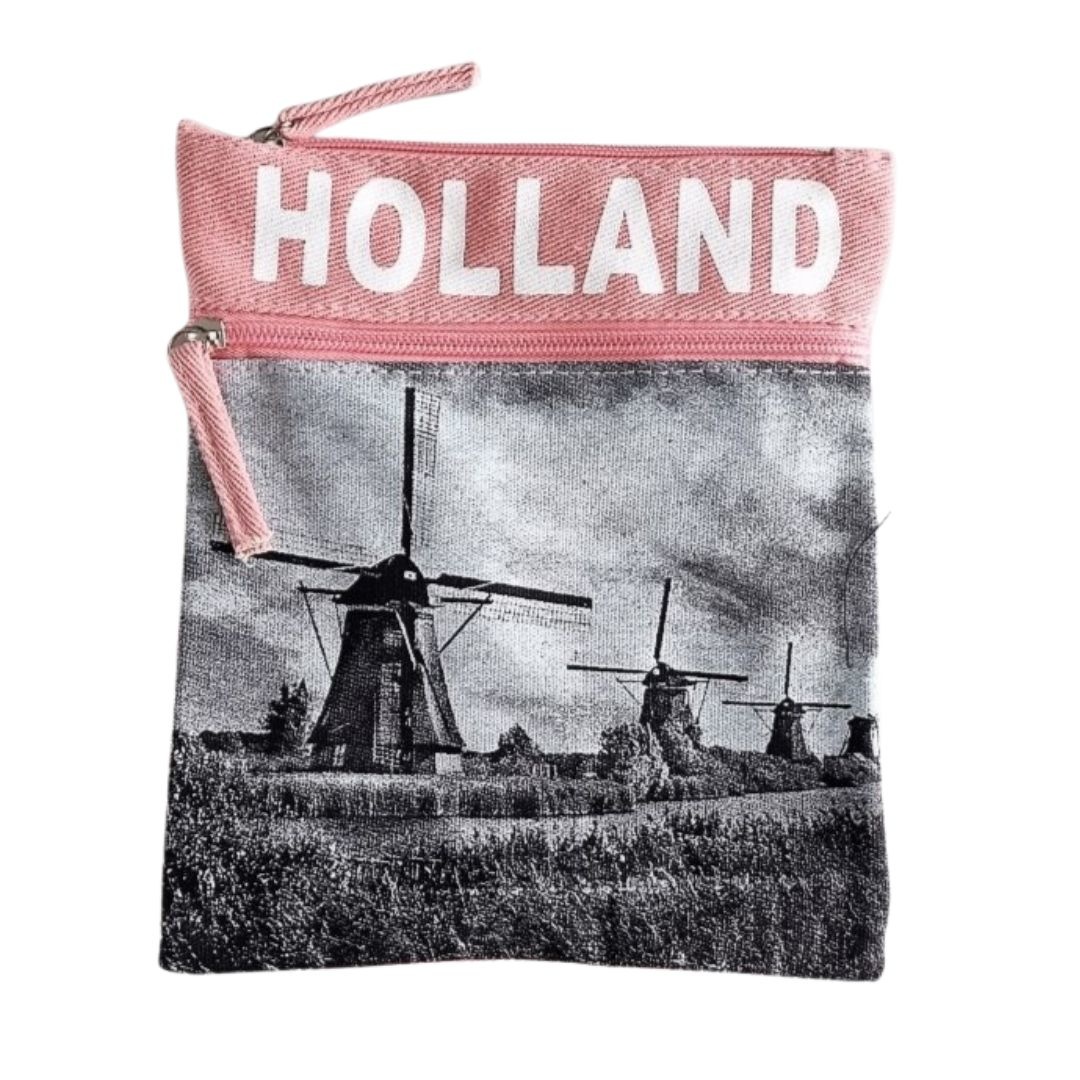 Denim Nektas - Passport bag - Holland windmills - Pink