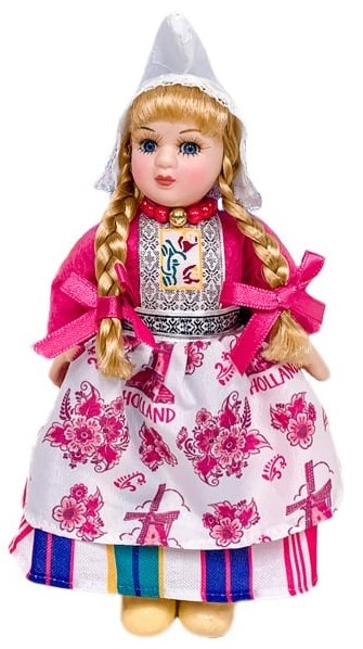 Dutch traditional costumeColor scheme PinkA hand-strung pearl necklace around the doll's neckTo complete it completely, add clogs (earthenware) to the feet
