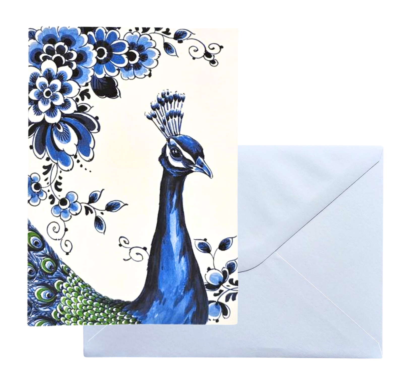 • Typisch Hollands Double greeting card - Delft blue - Peacock