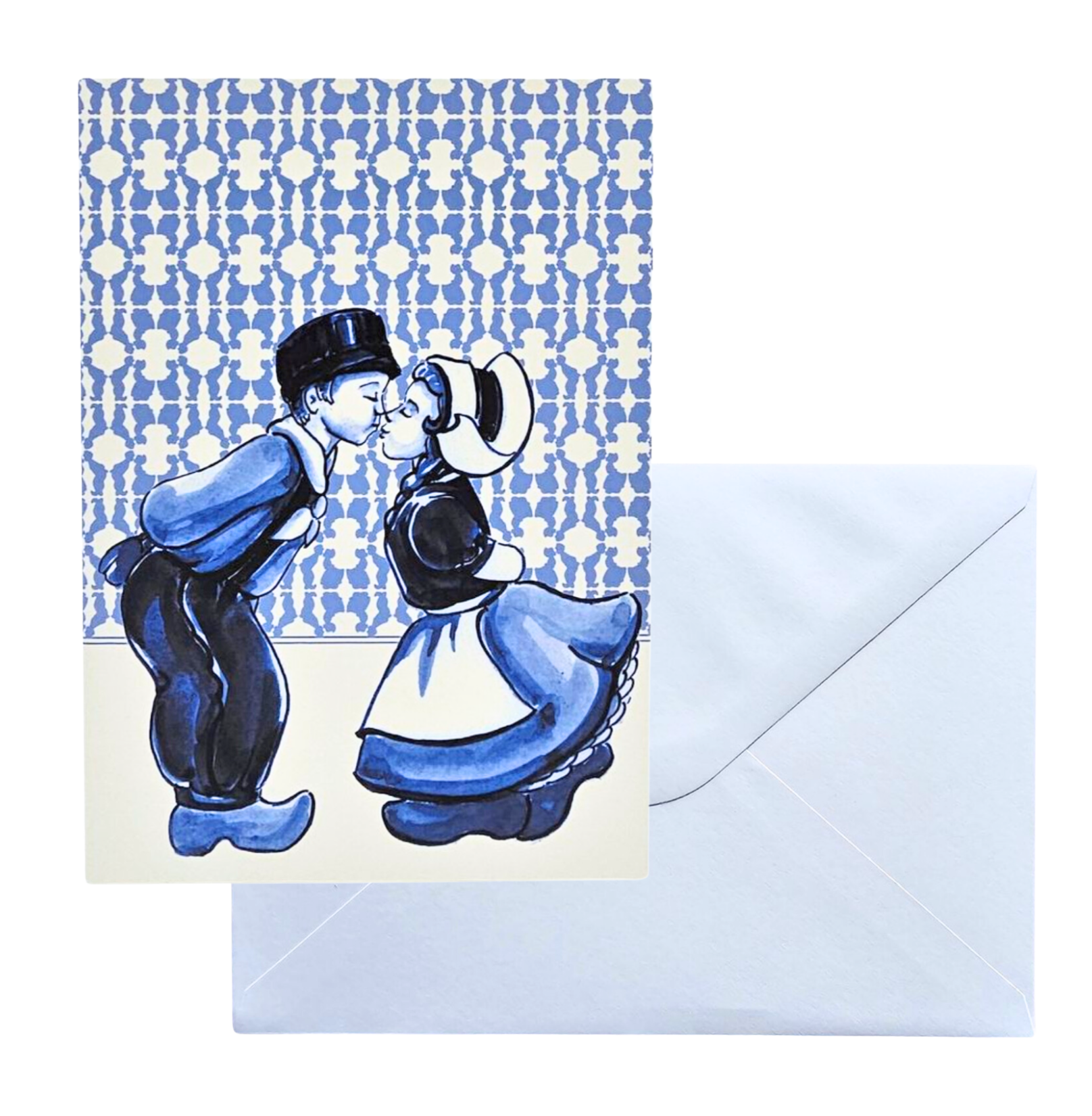• Typisch Hollands Double greeting card - Delft blue - Kissing couple