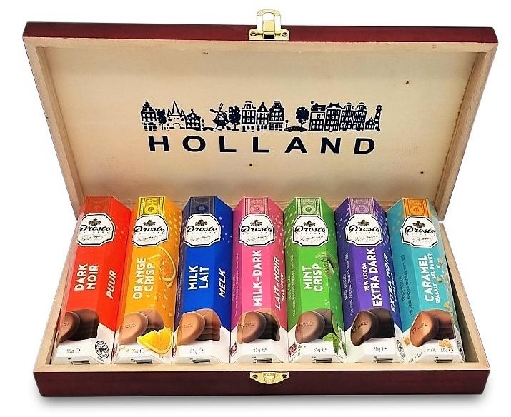 Stylish gift box filled with 7 rolls of Droste lozenges