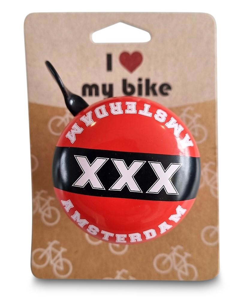 Typical Dutch (red) bicycle bell with Amsterdam decoration