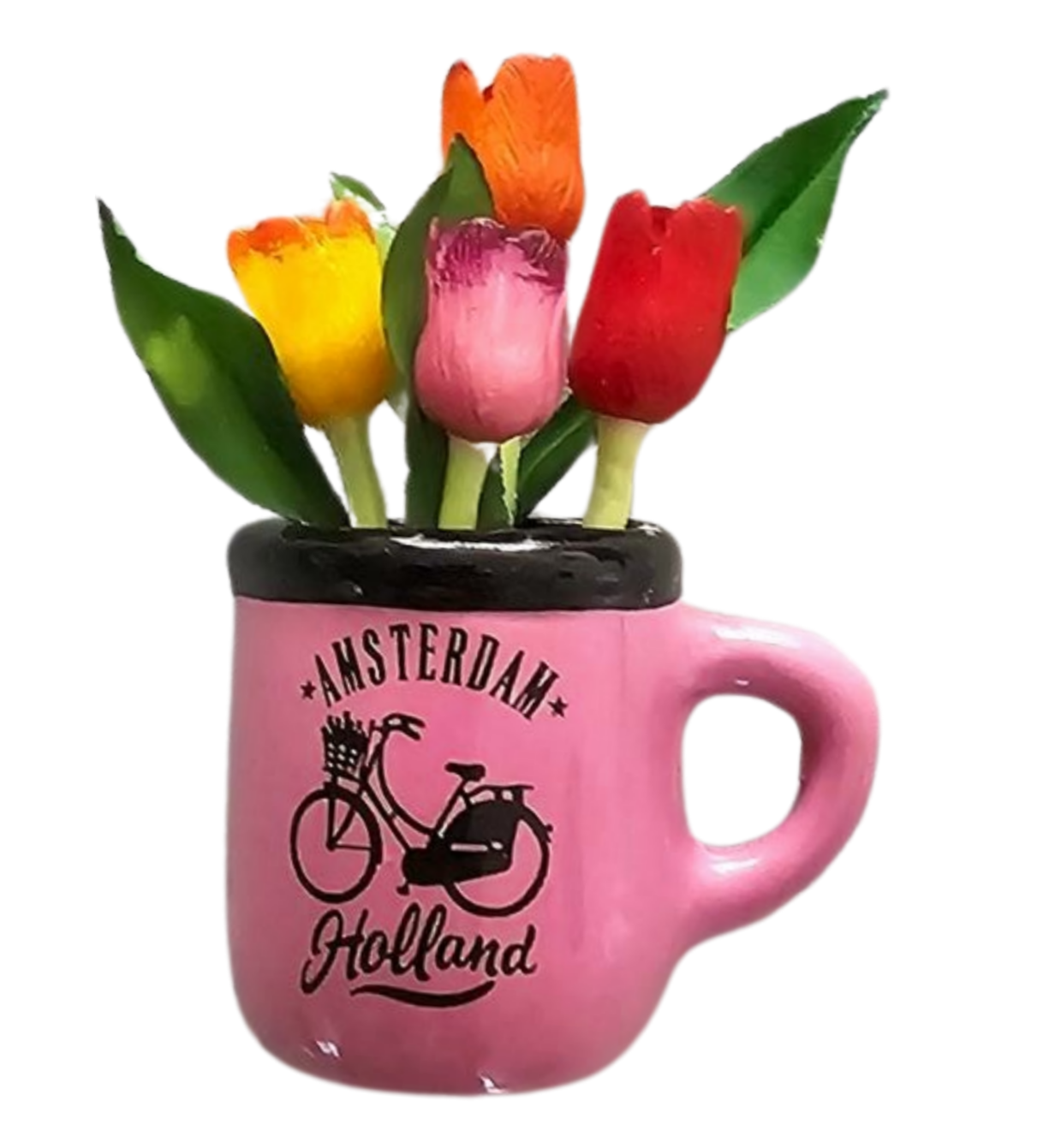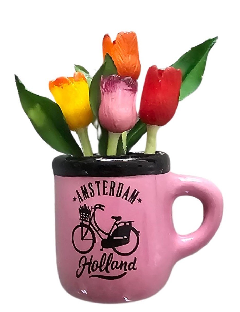 Half mug magnet filled with tulips - Pink Bicycle Decoration