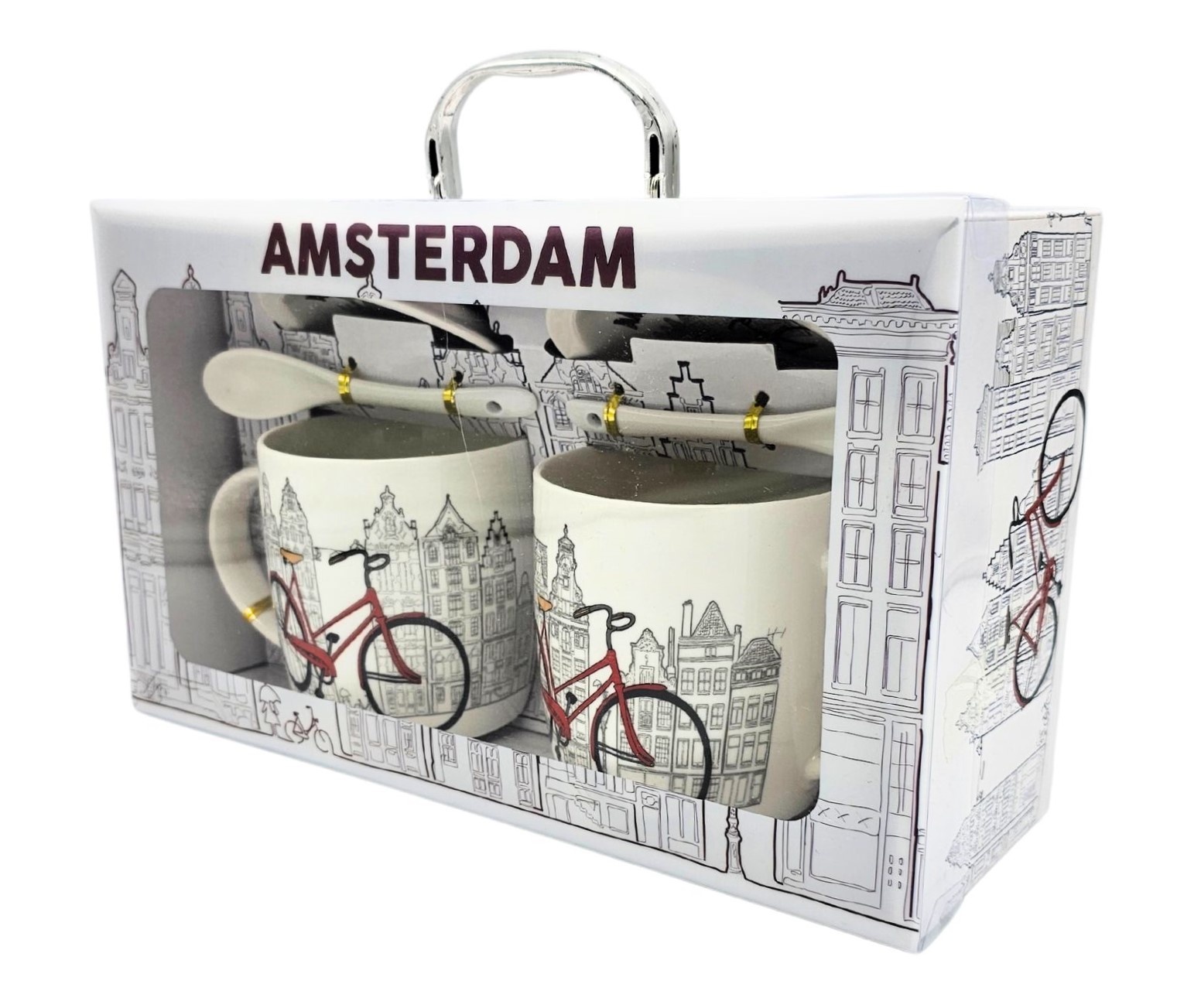 Set of 2 Mugs with saucers (for tea bag or biscuits) and spoons in a beautiful gift box