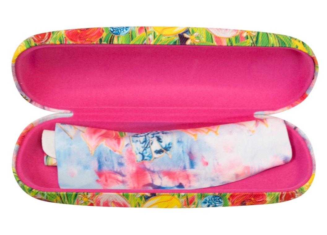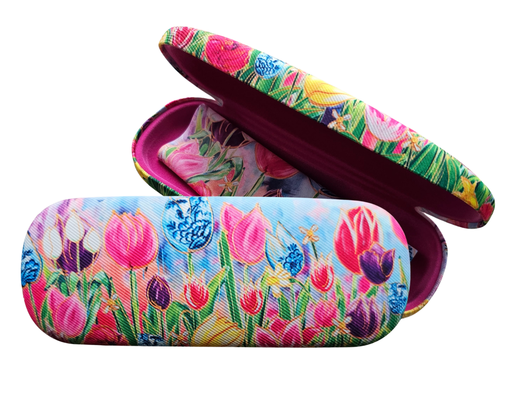 Stylish glasses case with beautiful but especially colorful tulips by the artist: Rick triest
