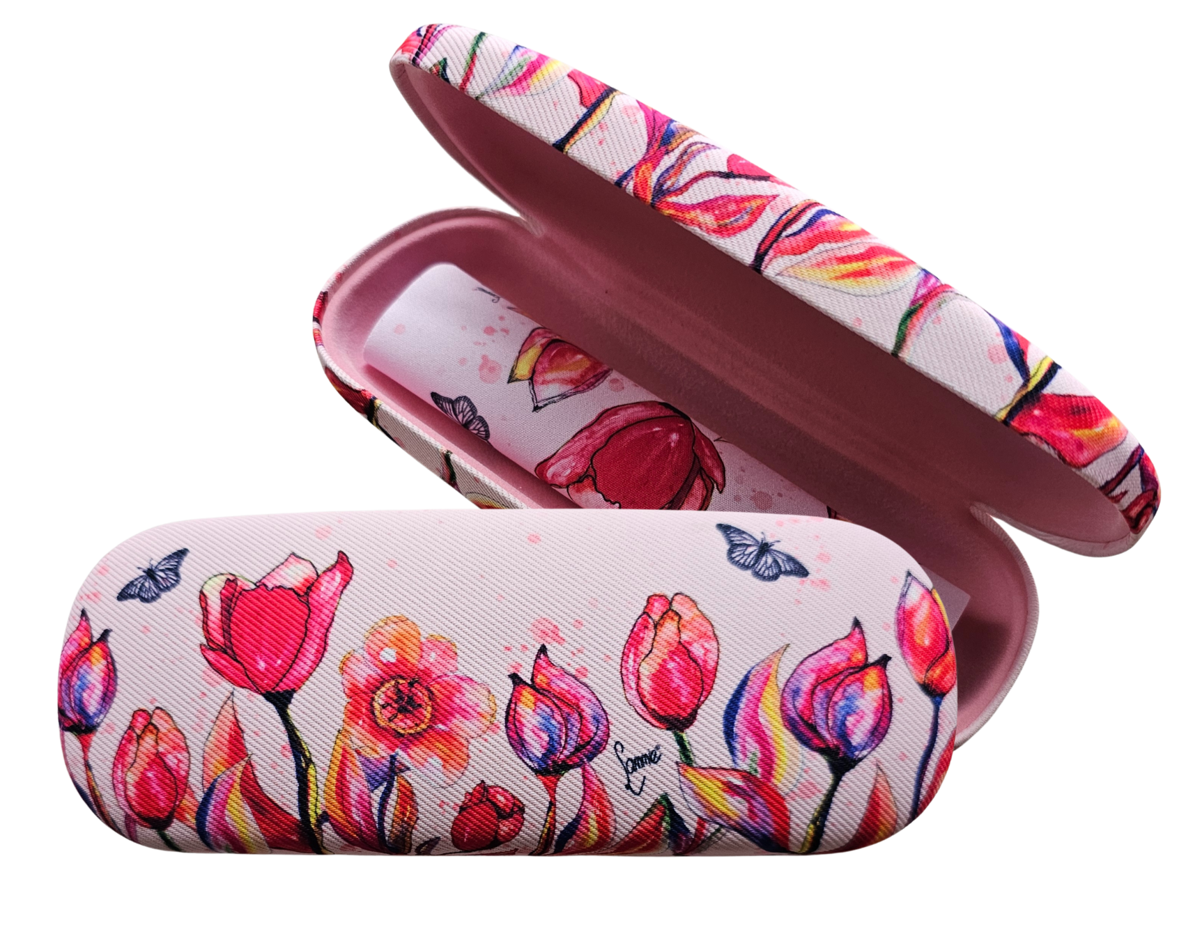 Glasses case - pink - tulip decoration