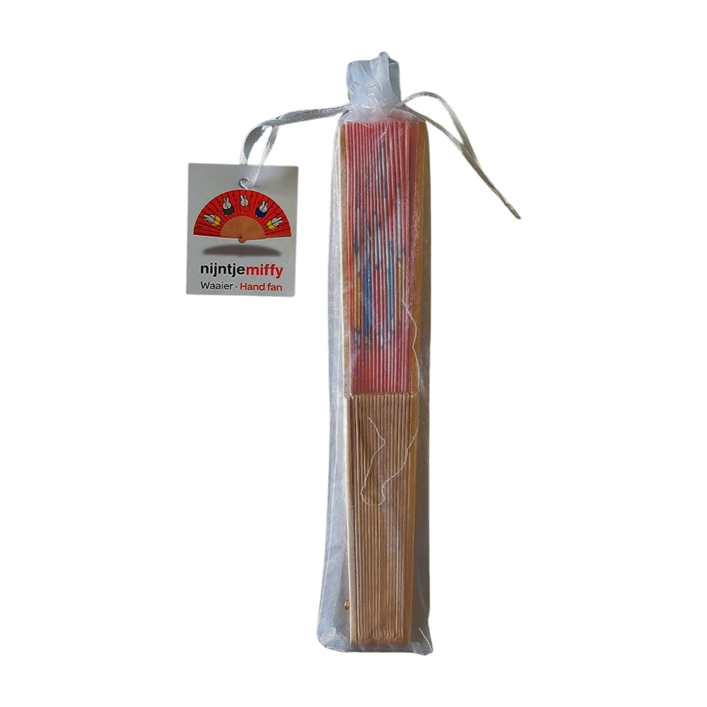 Hand fan - Miffy - Orange A nice hand fan to dispel the worst heat! The fan is made sustainably from bamboo, with a print of (Miffy dancing)