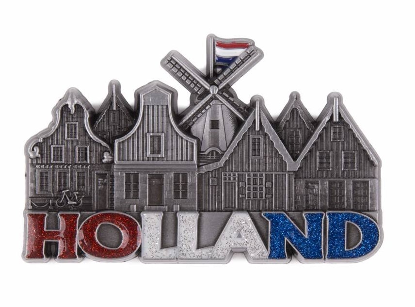 • Typisch Hollands Magnet mill & houses Holland with glitter tin