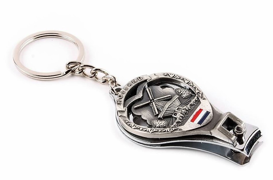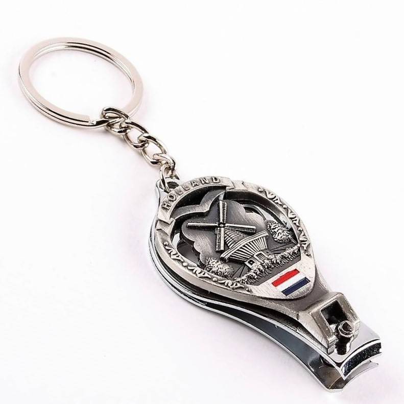 Keychain Holland Nail clippers with windmill decoration Tin colored - Holland back is a bottle opener With Dutch flag