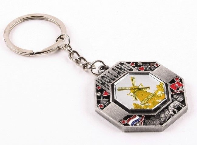 Beautifully decorated Holland key ring.Nice to give as a present or maybe to use yourself.Keychain 8-sided Holland Tin-colored