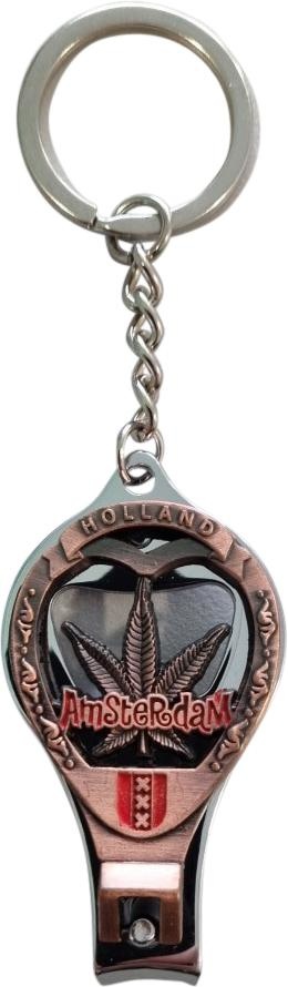 Keychain Nail clipper - Amsterdam - Holland (on chain) Copper color back is a bottle opener •City coat of arms of Amsterdam