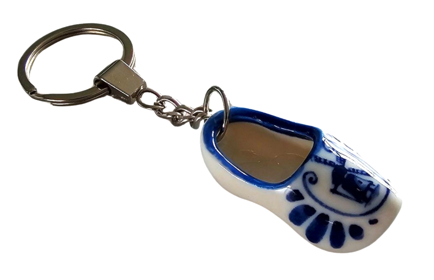Key ring - 1 porcelain clog - Delft blue.Equipped with the strongest key ring.Typically Dutch - Delft blue.
