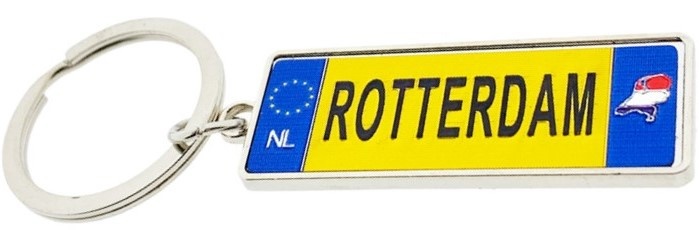 Keychain Rotterdam In the style of a Dutch license plate. With the Netherlands in the flag colors on the right, the EU circle and NL on the left. Size : 1.5 x 5 cm