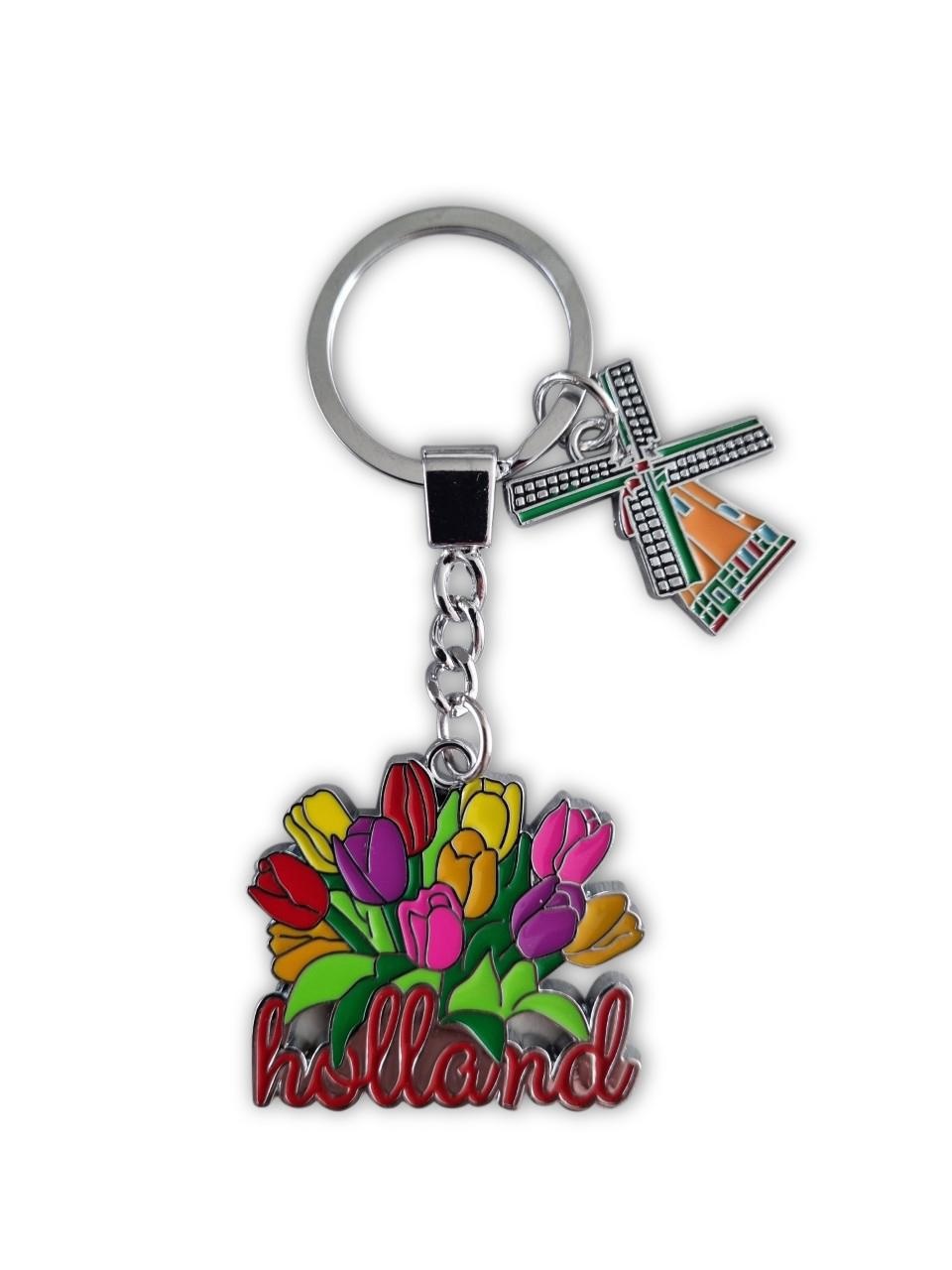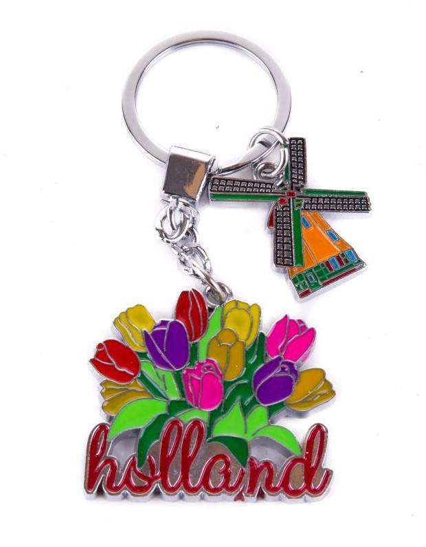 Large Dutch tulip bunch and an extra charm with a Molentje Text Holland the dimension: 5.5x4 cm sturdy chain and big ring