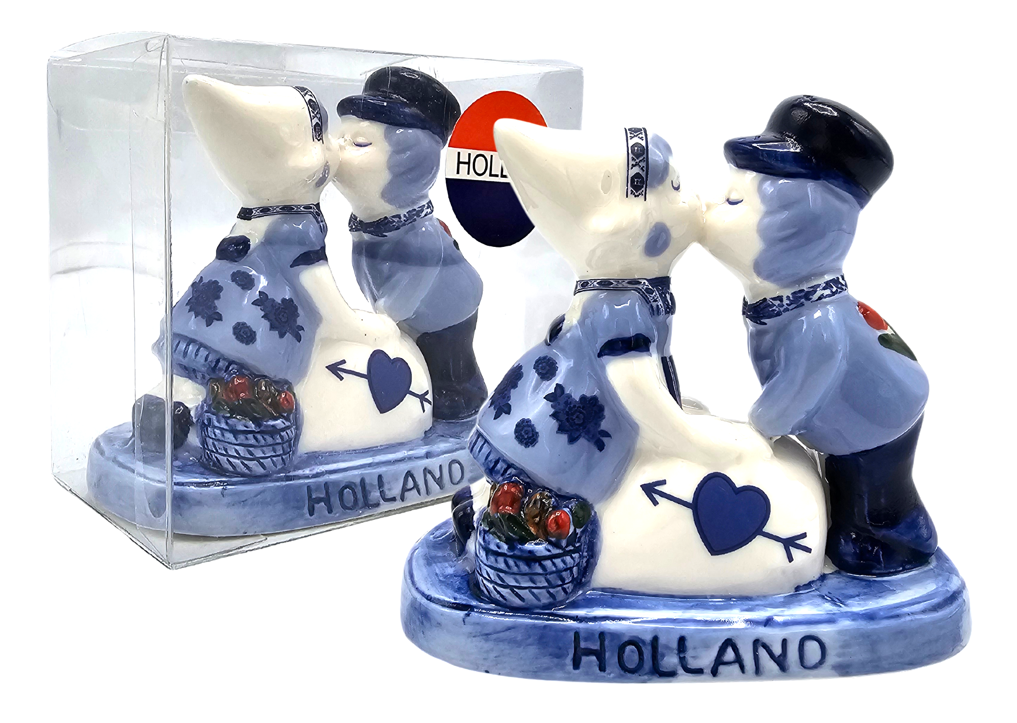 Kissing couple Holland - Delft blue The most famous love couple in the Netherlands. Kissing couple by stone - love Holland •Made in Delft blue earthenware. •In PVC gift packaging. • size: 10 cm