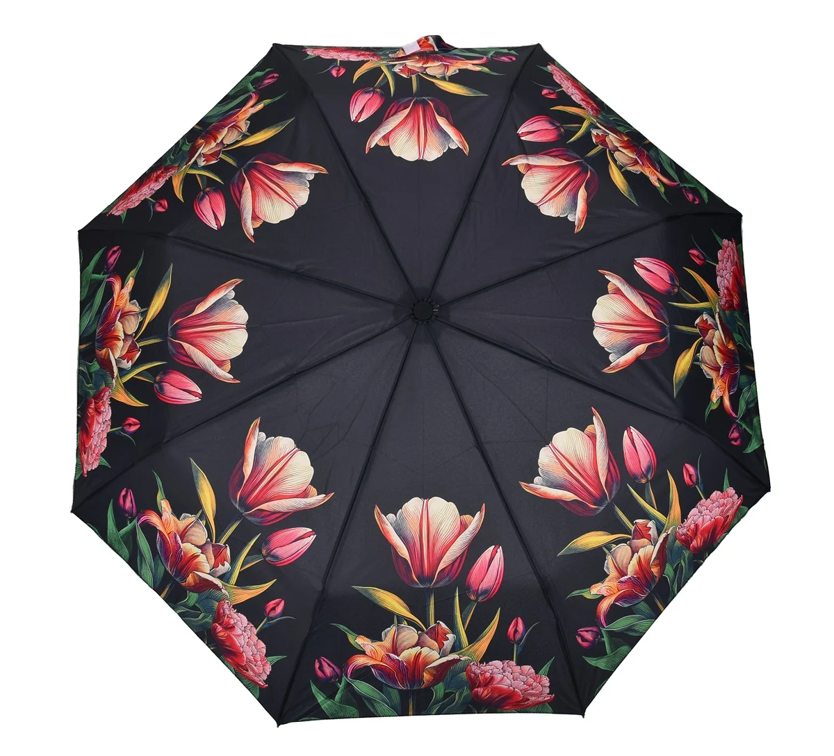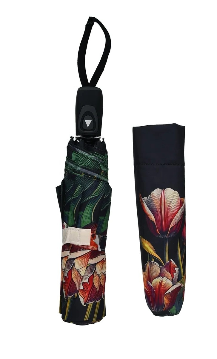 This folding umbrella opens automatically at the touch of a button, and when the weather is dry, you can easily fold it away again at the touch of a button.
