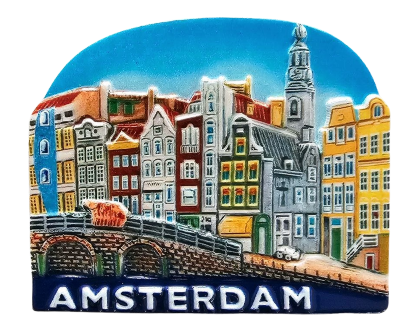 Magnet hemisphere with funny image of Amsterdam gable houses