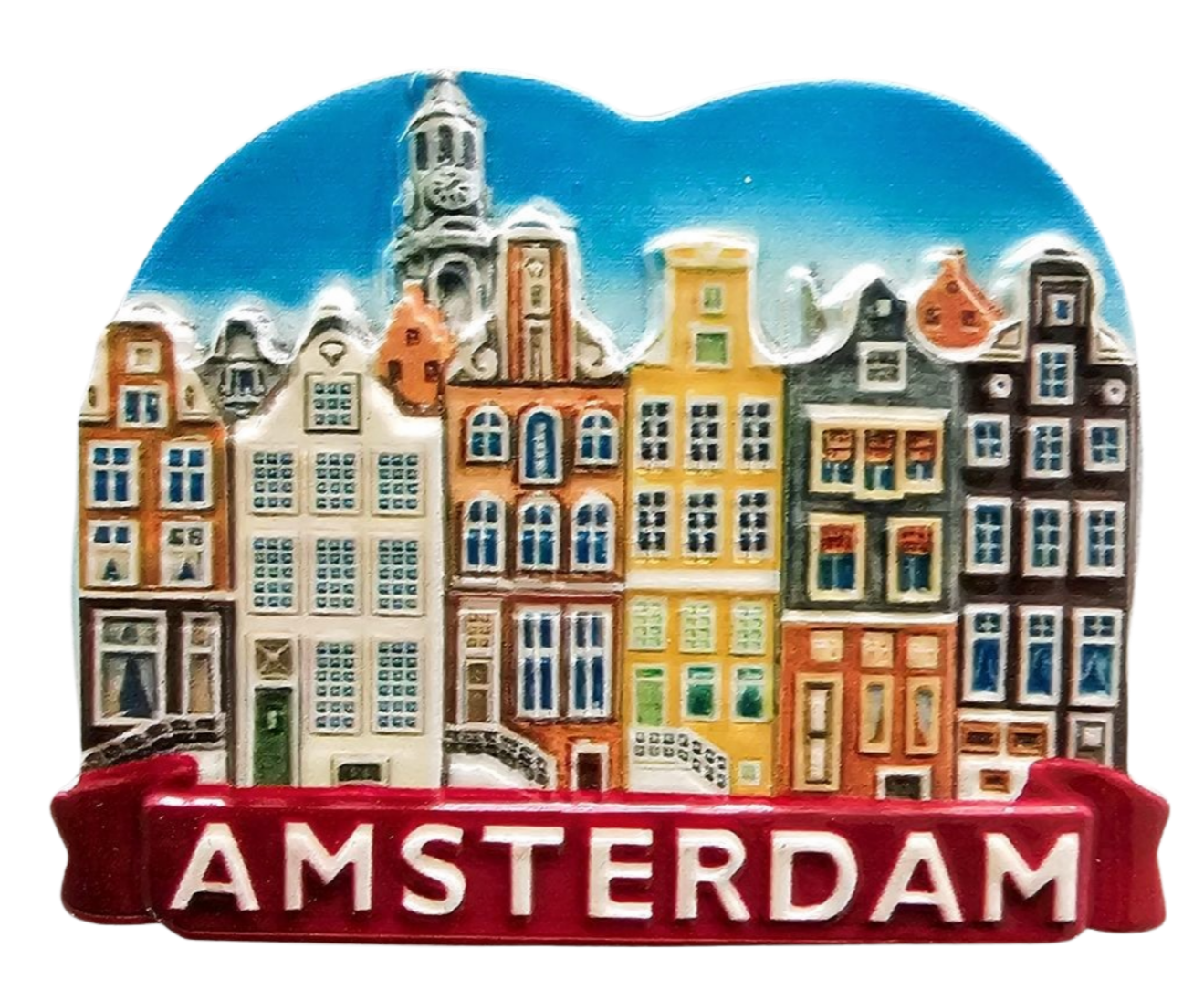 Magnet hemisphere with funny image of Amsterdam gable houses