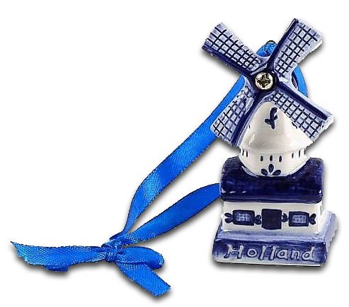 Windmill - Christmas tree decoration Delft blue windmill on a blue ribbon. Original Dutch pendant for the Christmas tree. Size: 4 cm.