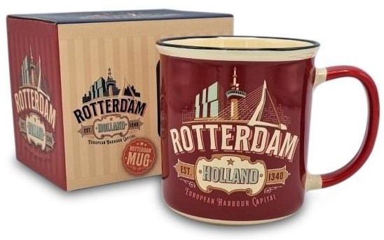 Mugs, magnets, and keychains from Rotterdam - you can buy them at Typisch Hollands. Order today and we'll ship it today!