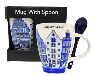 Discover this stylish Amsterdam mug with spoon, perfect for lovers of Dutch design.