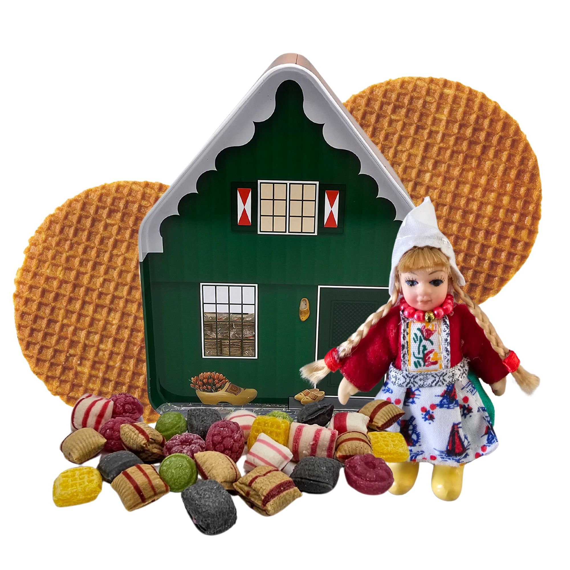 Old Dutch house (tin) Doll -Stroopwafels and candy