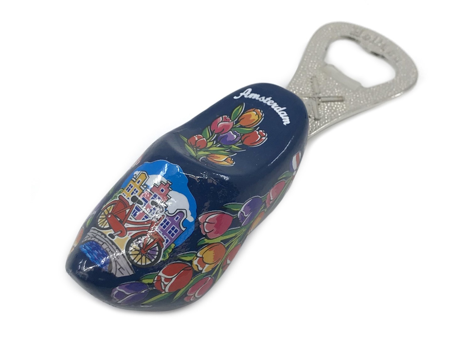 Bottle opener clog 8 cm - Blue - Bicycle - Facade houses