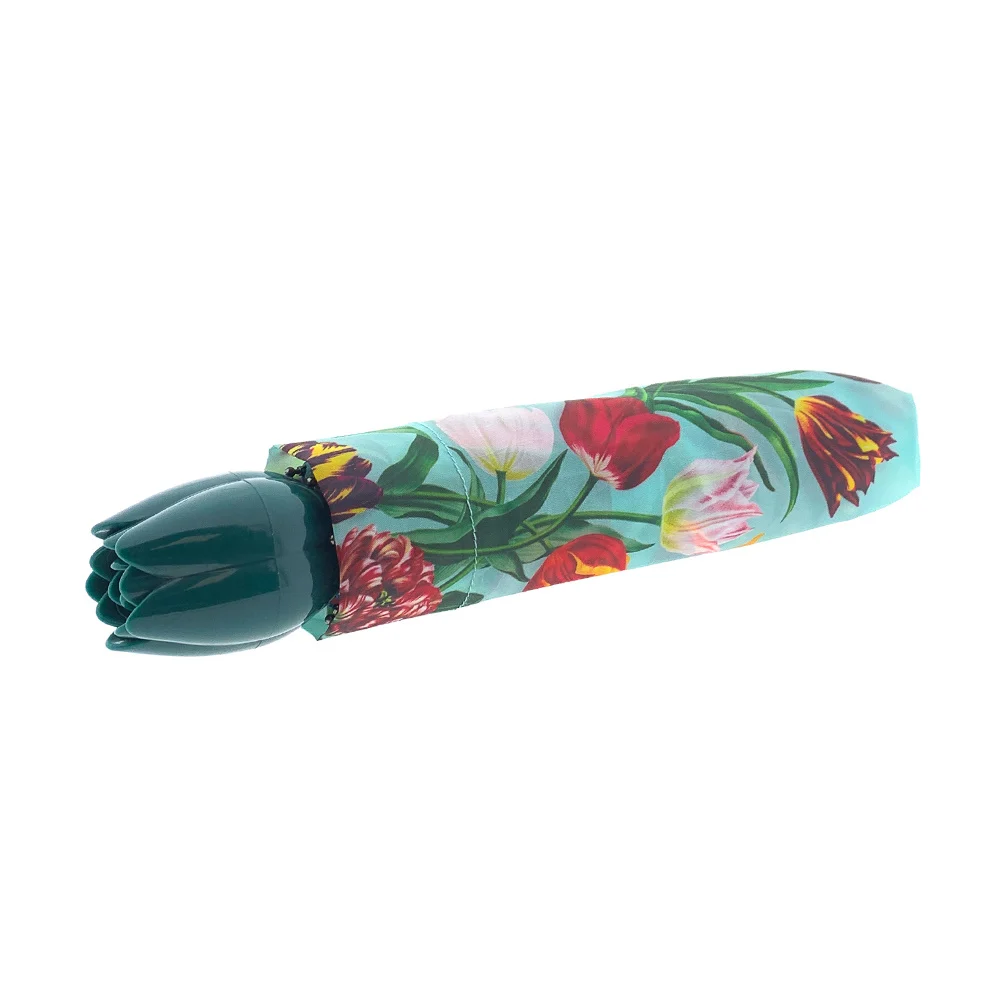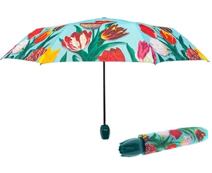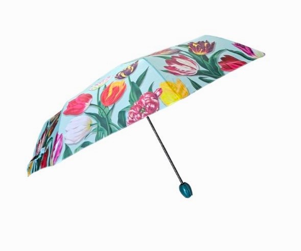This umbrella is foldable, super handy.Insanely beautiful print in soft green and orange tones.