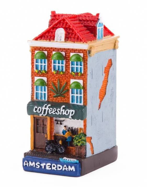 Amsterdam Coffee Shop Facade House: Start your Amsterdam facade house collection now. A colorful collection of all kinds of houses featuring traditional crafts and popular shops in Amsterdam. The houses are made of polystone. Dimensions: 4x5x6.5 cm. Hand-
