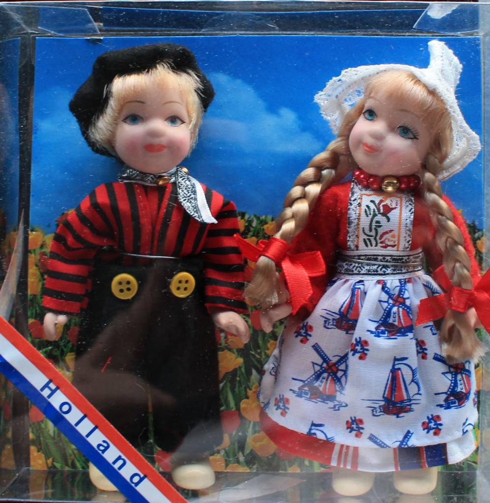 Dutch traditional costumeBoy and GirlA hand-strung pearl necklace around the doll's neckEm to finish it all clogs (pottery) on the feet